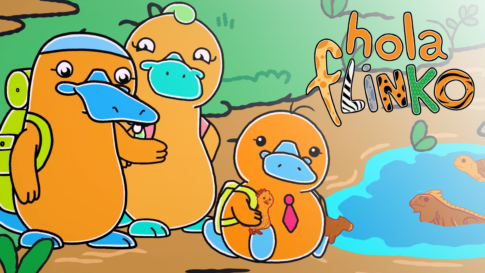 Flinko (5) es un amistoso y curioso ornitorrinco que junto a sus padres, Mamá y Papá Ornitorrinco, lleva meses recorriendo América Latina, conociendo bosques nativos, hermosas playas, desiertos y montañas. Mamá Ornitorrinco es una exploradora innata de insectos, proveniente de una familia de exploradores, que incentiva constantemente la curiosidad en Flinko, quien ha demostrado gran interés por conocer y documentar los animales del continente Americano en su álbum de Fotos. Por su lado, Papá Ornitorrinco, hace todo lo posible por seguirle el ritmo a su aventurera familia, siendo el más precavido y sobreprotector del grupo.