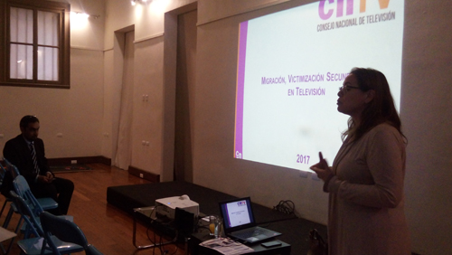 - Alejandra Phillippi, del Departamento de Estudios del CNTV, se refirió al rol de los medios en el contexto de cobertura noticiosa de temas de migración.