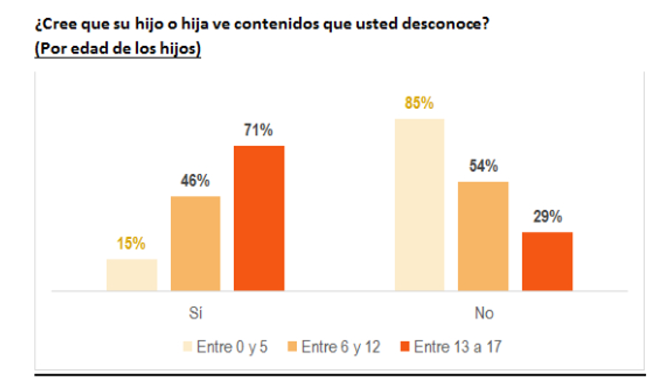 En el mismo documento, se detalla que un 45% de los padres afirmó desconocer los contenidos a los cuales acceden sus hijos. Lo mismo ocurre con los progenitores de adolescentes entre 13 y 17 años, pero esta vez en un 71% de los casos.