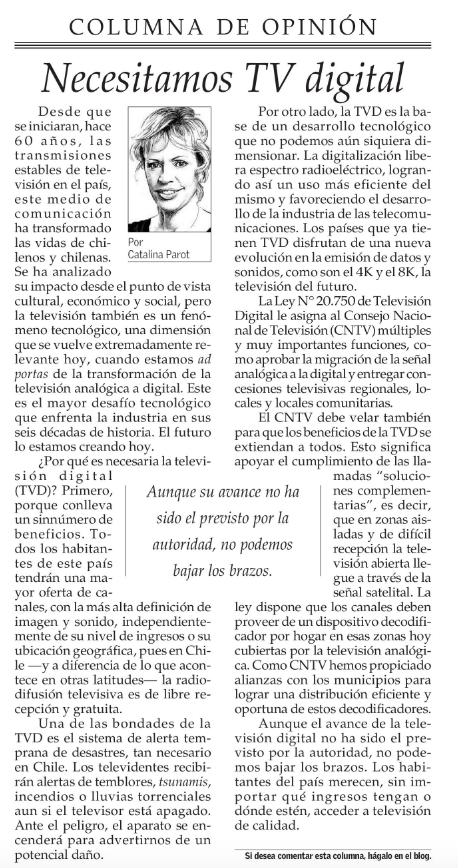 Necesitamos TV digital. Columna presidenta CNTV, Catalina Parot